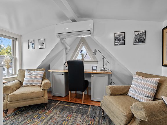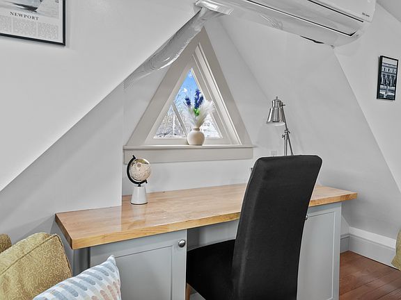 Summer 2025! Available July- September for the season or for short term stays. This newly renovated third-floor studio is the perfect summer retreat for your visit to Newport. Walkable to Broadway Restaurant District, Harborfront & Downtown Shops & Restaurants! As you enter, you'll be welcomed by a cozy atmosphere featuring two oversized chairs and a TV, alongside a convenient built-in office area for your work needs. The sleek galley-style kitchenette is thoughtfully designed with a small refrigerator, microwave, and toaster oven, making meal prep a breeze. Throughout the unit, you'll appreciate the warmth of hardwood flooring, and at the far end, a comfortable queen-size bed awaits, accompanied by a spacious closet for all your storage needs. The beautifully tiled bathroom features a modern walk-in shower, adding a touch of luxury to your stay. Ductless AC Split units for quiet and efficient coolling. One off street parking space and plenty of unrestricted street parking is available, you'll also have access to a shared washer and dryer in the basement. Unwind after a busy day on the gorgeous victorian front porch adorned with comfy furniture, perfect for a beverage and a snack while you watch the lively parade of cars and bustling pedestrians a delightful spectacle of urban life right outside your door! Enjoy the convenience of all utilities included in your rental, making this studio a hassle-free home away from home. Sorry, no pets. Monthly Rates: July $6000 August $6000 September $4000 Move Out Cleaning Fee $175 Utilities included One Off Street Parking Space