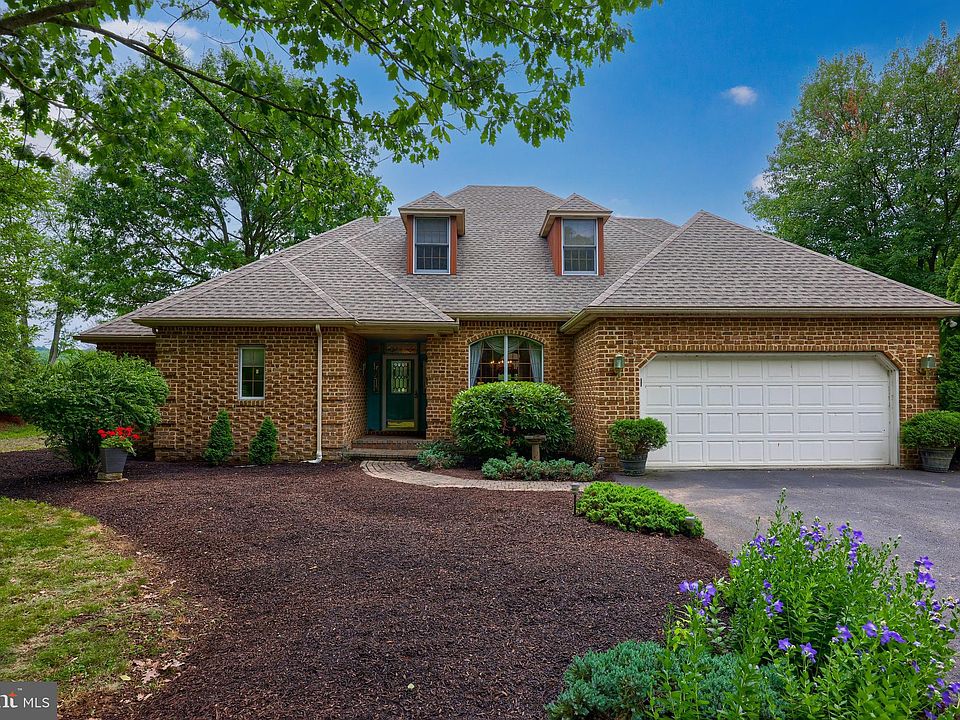 Architectural 1st Floor Master at Blue Marsh Lake Tucked away in an awesome setting, enjoying the privacy of mature trees around the front, wide open green space out back, and the gorgeous Heidelberg Golf Course bordering the property. Meticulous landscaping and a 2-year old mansard roof enhances the curb appeal even further, while neighboring Blue Marsh makes this location even more unique. Up the stone walkway to the covered front entry, guests are greeted by the welcoming foyer with vaulted ceiling, decorative skylights, and beautiful metal spindles on the staircase. The space immediately opens to the lovely living room where a center gas fireplace with marble front steals the show, while Eyeled® lighting, tall decorative windows, and glass door access to the covered patio brighten the entire room. The hardwood flooring continues through to the light and open dining room, elevated by crown molding and a massive front, arched window. Follow it back to the main hub of the hub, featuring a wonderful kitchen and breakfast room that flows openly to the awesome family room. In the kitchen, the chef will love the Schubert cabinetry, a large, center island with electric cooktop, granite countertops, tumbled marble backsplash, and stainless steel appliances including double wall oven and built-in dishwasher, while a built-in desk area, and breakfast bar overlooking the family room makes the space even more versatile. The open family room is highlighted by a gas marble front fireplace with ornate wood mantle, Eyeled® lighting, and double glass doors to the back patio. The first floor Master offers convenience and luxury, featuring floor-to-ceiling windows and double glass door access to the back patio, plus massive private bath with hardwood floors, vaulted ceiling, double vanity with granite countertops, makeup area, corner soaking tub, walk-in stall shower, and large walk-in closet with shelving. Upstairs, three additional bedrooms — one with angled ceiling and access to attic — all have carpeting and share a hall bath with tub/shower, granite vanity countertops, tile floor, separate stall shower, Eyeled® lighting, and built-in cabinet/linen closet. But your favorite place of the home may quite possibly be outside, where the wrap-around, fenced-in paver patio with multiple sitting areas, including one shaded by a wooden pergola, and another secluded by a beautiful stone wall, all enjoy views of endless green landscape with its ensuing tranquility.