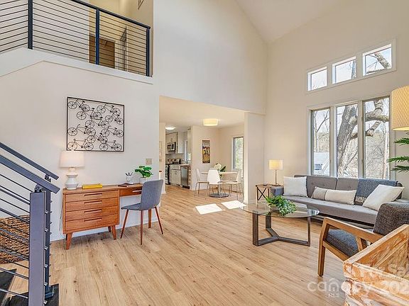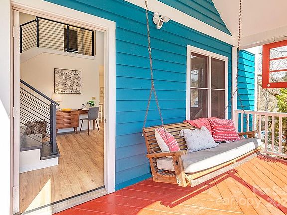 Well-designed Montford Cottage that lives well. Open floor plan with Cathedral Ceilings in the main living area and vaulted ceilings on the upper level. This home has so many high-quality casement windows and is south facing which provides gorgeous natural light. A modern feel with all the unique angles which cast light and shadows throughout, giving a sense of spaciousness and beauty. Kitchen comes with a deep sink, butcher block counters, white tile, white cabinets, and stainless appliances. 1 Bedroom on Main with Murphy bed & full bath. Upper level has 2 beds and 1 full bath. Seller used upper as a primary suite. The perfect front porch which is perched above just enough. Decking (Ipe) off the back of the home offers a great space for entertaining. Montford is historic and urban - A tree lined neighborhood that is walkable to the greenway, neighborhood restaurants, Trader Joes, Whole Foods and Downtown AVL. This wonderful community offers the best quality of life.