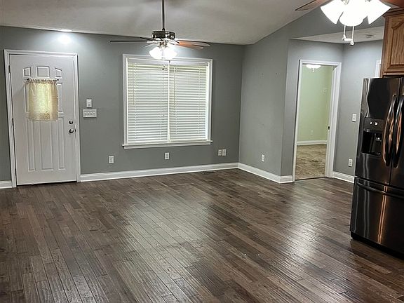 Attractive 3 Bedroom, 2- Bath home built in 2013. The home has comfortable open floor plan on one level. The living area and kitchen have engineered hardwood floors, and all the rooms have ceiling fans. The kitchen has ample cabinet space and includes all the appliances. The bedrooms are carpeted. Outside features include; a 30' x 40 ' metal building with two 10' overhead doors (one door has auto opener), electric including 220 outlet, concrete floors. the lawn has a partially fenced back yard, additional outbuilding, and plenty of space for a garden - .71 +/- acres. Ideally located in a quiet country setting just minutes from town.