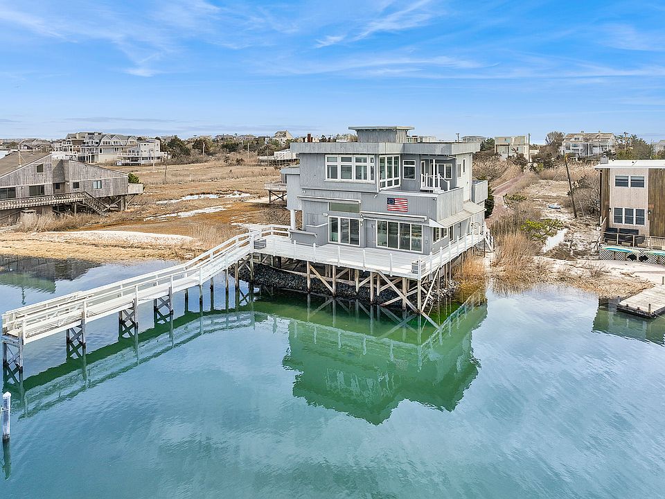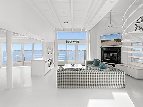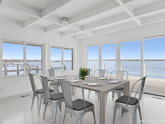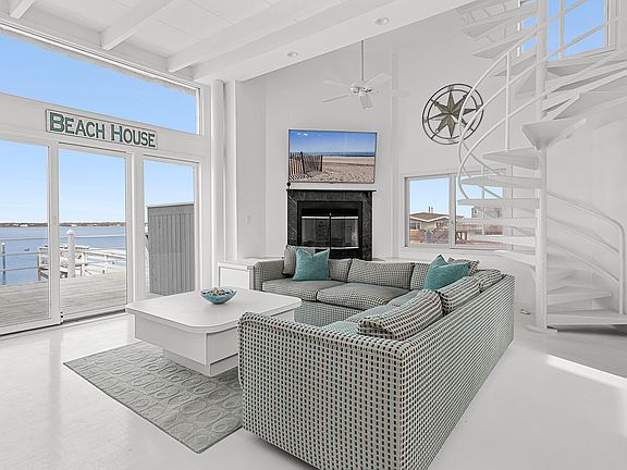 Here is your chance to spend August or September on Dune Road in Westhampton Beach! This bayfront home takes full advantage of the sweeping panoramic water views and incredible sunsets! Upon entering the four bedroom, four bathroom beach house, floor-to-ceiling windows frame the picturesque view and allow an abundance of natural light to fill the great room. This level also includes two guest bedrooms and two bathrooms. The second floor offers a third guest bedroom and bathroom. The gracious primary suite, with dressing area, dual vanities, jacuzzi soaking tub, separate shower, sauna, and private deck, completes the third level. The ample decking, with built-in BBQ area, is perfect for outdoor dining and entertaining and leads to a private dock for fishing and swimming and can accommodate a 30' boat. Across Dune Road, your private boardwalk leads to ocean beach access. Westhampton Beach's vibrant Main Street is less than 2 miles away, with restaurants, shops, and the Performing Arts Center. Available August - LD for $40,000 or any two weeks in August or September for $20,000.