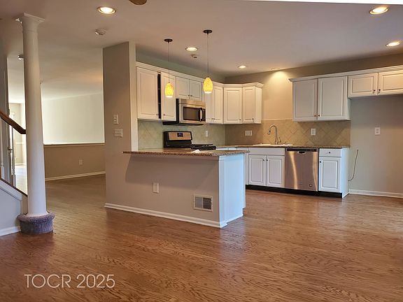 Nestled in the community of Birchwood Hills, this 4 Bedroom, 3.5 Bath townhouse offers approximately 2,000 square feet and boasts hardwood floors, newer carpet and updated baths. Freshly painted throughout, the first floor features a white kitchen with stainless steel appliances and granite counters, large living spaces with a deck overlooking the backyard and an attached garage. The ground level provides a family room with a sliding glass doors to yard, full bath and plenty of storage. Birchwood Hills offers a pool, gym and tennis and is convenient to shopping, schools and restaurants.