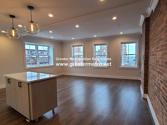Absolutely stunning penthouse unit! Completel gut renovated, just finished. Be the first to live here! Available NOW. Rent specials if you can move May or June. This top floor large 1 bedroom corner unit has it all. Beautiful quartz counters, movable kitchen island, fully applianced kitchen. Views east towards the harbor and views north up Hanover Street and you look directly out over the Prado and the Paul Revere statue. PRIME location! Exposed brick, hardwood floors, super sunny. In unit washer/dryer, central heating and air conditioning, it has it all. Rent specials for a fast move in and NO FEE. Pets are OK! Steps to the T and financial district. Act fast!