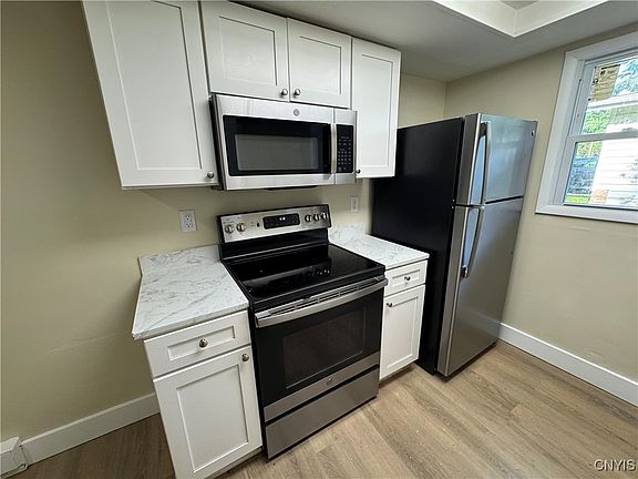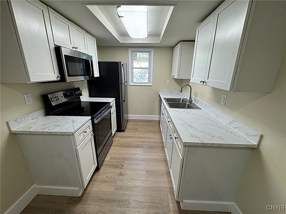 Fantastic investment opportunity with this renovated, Ranch style duplex, with a three bedroom one bath Unit and a two-bedroom one bath Unit with bonus room and BRAND NEW ROOF! Both units have matching stainless steel appliances, vinyl flooring, convenient laundry hookups right outside the bathrooms, ample closet space and convenient off-street parking on the double-wide asphalt driveway. Recently cash flowing $2600/mo and could easily command $3000 or better between the two units. Currently vacant and ready for new tenants, or live in one and cash flow the other to pay your mortgage! Solvay electric, baseboard electric heat, and energy efficient appliances means low utility costs. Move-in ready so you can be cash flowing in no time!