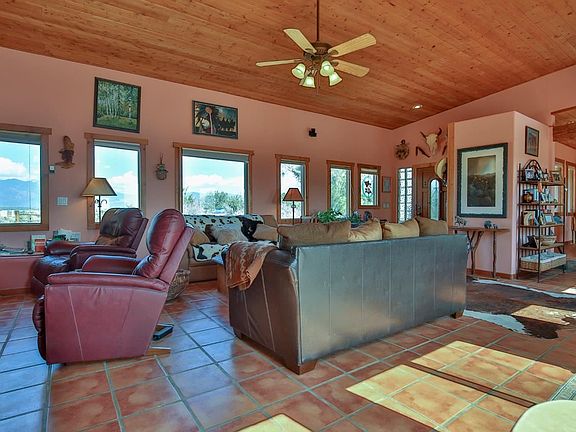 Great home with great views. This home sits back from Los Cordovas road on a knoll which allows 360 degree views. There are 2 bedrooms and 2 bathrooms, a greenhouse, large garage and walled patio. The owners have planted lots of trees and put in garden spaces to create a mini park like setting. The property is fenced for your furry pets. With lots of light and easy access to Town, Taos Country Club, and the recreational area at the end of County Road 110, this is truly a spectacular setting. Check it out. The property is priced to sell quickly.