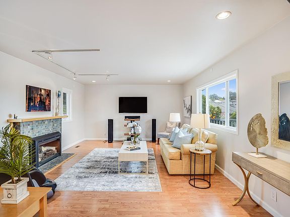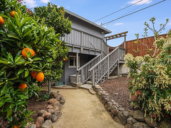 Bright, 3 bed/3 bath, delightful garden, cooks kitchen, deck views, abundant storage, large lot. The theme of this house is food and comfort. Farmer's market produce cannot compare with the taste of the herbs and fruit from this garden. Extensive counter space, 2 separate sinks, a gas range and powerful vent hood make garden to table a reality. Generous master suite includes a shower for 2, Jacuzzi tub and 4 closets. The 2nd bathroom features a steam shower and full size washer/dryer. The living room features large windows for light and a furnace-rated gas fireplace. On the lower level is an office/guest room with another full bathroom. Also downstairs is a mudroom for coats and shoes, large workshop/hobby space, and extensive storage. The garden contains several mature fruit trees and custom planter boxes for growing herbs and vegetables. Walk to school, library, country club, and downtown Millbrae.