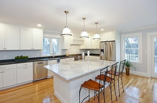 Behind the demure front door of this home is a gorgeous gut renovation and expansion of a Classic 1920's Colonial with a beautiful view overlooking a large backyard. The renovations are a seamless blend of original period details like hardwood floors, handcrafted shutters, and custom made fireplace mantel with modern amenities including expansive chef's kitchen with white cabinets, high end stainless appliances, and gorgeous granite island, butlers pantry, cathedral ceiling master bedroom, large 2 car direct entry garage, mudroom, over sized deck, and high efficiency heating and air conditioning. The location can't be beat at less than a mile to Bridge Elementary, Clarke Middle, Lexington High School, and the center of town. Not to mention the convenient closeness to major commuting routes,shops, restaurants, and recreation. Warm, inviting and sun filled, this home can be yours.
