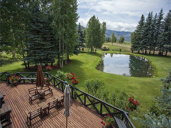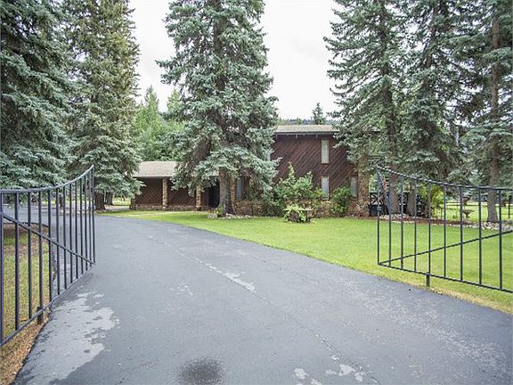 Beautiful estate looking home sits on 4 separately deed lots with several large spruce and aspen trees for a total of 2.28 acres of lush green yards with two creek fed fish ponds. Completely fenced with stone pillars and log rails give this property a rich look second to none. The home is an exquisite 3 bedroom 2 bath with a large dining area and living room that have vaulted ceilings. Granite counter tops in the kitchen, a large laundry room and a wet bar add destination to the home. A large approx. 800 sq ft Master bedroom suite with a walkout deck and a view of one of the gorgeous ponds and yard with a great mountain view. Has a large beautiful 930 sq ft synthetic constructed deck to enjoy the beauty of the back yard and mountains.Has an attached heated two and one half car garage and a detached two car garage. The attached garage has a water sink and lots of cedar lined storage cabinets and an attic above with a separate cedar lined room. There is a green house and a well constructed stone BBQ grill. An under ground irrigation system on it's own well that keeps the yard beautifully green. Home has a circular gated asphalt driveway. This is a must see home and property for those that are looking for a beautiful estate on a large 2.28 acre parcel. Sellers owns the 0.53 acre lot east of the home that shares one of the ponds that is available to the buyer of the home for $139,000.