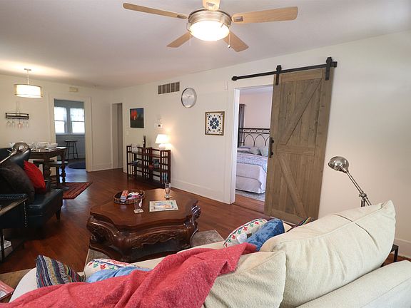 Welcome to your new home sweet home! This charming Riverside gem boasts a layout perfect for comfortable living and entertaining. The covered porch welcomes you into the ample sized living/dining room with beautiful original hardwood floors that add a touch of warmth and elegance to the space. The updated lighting fixtures illuminate the room, creating a cozy ambiance for gatherings with family and friends. You will enjoy spending time in the bright kitchen complete with new countertops, tile backsplash and newer appliances that make meal preparation a breeze. If you’re slaving over a holiday dinner or simply enjoy whipping up a quick meal, this kitchen is sure to inspire your inner chef. End your day in the tranquility of the expansive bedroom. Yes, that is a king sized bed with plenty of room your computer work (or play) space. The updated bathroom provides modern convenience and style, making your daily routine a luxurious experience. Downstairs, a large family room with new carpet provide asdditional living space for movie nights, game days, or quiet evenings in. There is a ton of room for furniture and entertainment essentials. Easy living with replacement windows and vinyl siding. Sewer line was replaced in 2020. All this comes with a large corner lot and garage. Enjoy the lifestyle!