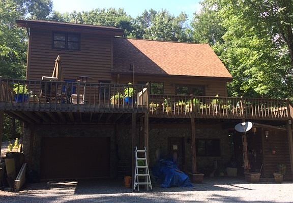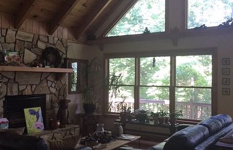 Picture yourself enjoying this year round long range Mountain View from the deck of this adorable country chalet style cabin in a great neighborhood with 5.63 private acres less than 4 miles from town. It features a wall of windows to enjoy the view any time. Open great room with wood-burning FP, dinning area and full kitchen with bar for additional seating. Stainless steel appliances, separate laundry room/pantry, large master bedroom with en suite bathroom on main, cozy loft, 2 upstairs BR's and full bath, terrace level den/rec room with wood stove and half bath, drive under garage, circular driveway, additional parking in rear, fire pit and so much more. You are going to love this one!