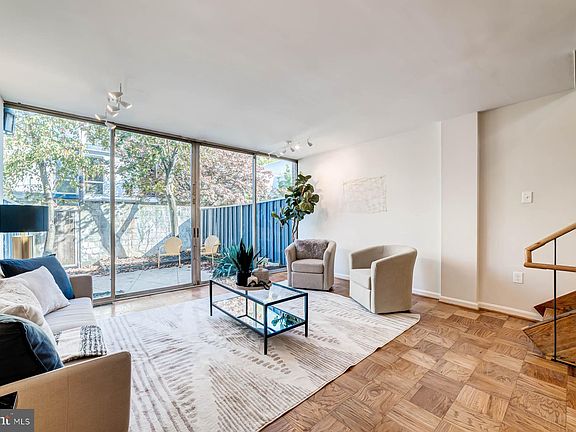 Sun-filled 3 level FULLY RENOVATED townhouse with fenced patio in DC’s Southwest Waterfront-Wharf-Navy Yard neighborhood is a quiet oasis in the city. Centrally located in the secure gated coop River Park community, this mid-century modern townhome was designed by Charles Goodman with Reynolds Metals Company with a main level featuring a FULL WALL OF GLASS from floor to ceiling, with double sliding doors that open to a fully fenced and hardscaped patio. Stay home and cook in your new kitchen with light gray cabinets, granite counters, SS appliances, undermount sink, exterior exhaust fan, disposal and transom windows that let in the light while offering privacy. The dining room opens to the spacious living room, with a completely new half bath on main level, refinished hardwood floors, twin track lighting fixtures and a classic 1960s open tread wood staircase. Upstairs find two bedrooms and a den – the den can be easily converted back to a third bedroom – and a completely new full bath. The den has full-length sliding glass doors that open to let in a breeze and a wall of closets for ample storage. The lower level has a bonus room with twin windows, a laundry room with new washer/dryer and extra unfinished storage room. Centrally controlled heating and air conditioning included along with all other utilities. Parking spaces are available to rent through coop. The monthly coop fee includes the owner’s property taxes so the buyer’s mortgage payment will be reduced by this amount with only principal, interest and insurance left to pay. Community amenities include a fitness center, outdoor swimming pool, 24/7 receptionist, tot lots, Members Lounge, Arts & Craft Room, Library and picnic area. One block from the Waterfront Metro and new Safeway with curbside pickup, .8 miles to the Navy Yard Metro. Walk less than a mile to Nats games at Nationals Park, walk .4 miles to the Arena Stage or walk a block to the SW Waterfront Park.