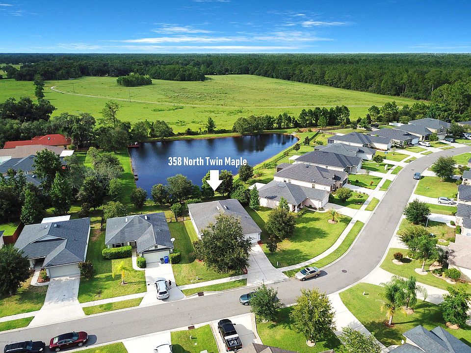 TOO MUCH TO MENTION ON TWIN MAPLE! BEAUTIFUL 4 Bedroom 2 Bathroom home in the highly desirable Twin Lakes Neighborhood. LAKE FRONT, owner hand-picked this lot for the view and peaceful seclusion. Spacious Master Suite features lake views, his and her sinks, walk in closet with custom built system, shower and soaking tub. Gorgeous kitchen also provides soothing lake views, upgraded appliances and ample space to store and prep. Elegant wood laminate flooring throughout the living areas. Wainscoting in bedrooms 3 and 4. In house laundry. Fenced in backyard is the perfect place to play for your kids or pets. Community features UNDERGROUND UTILITIES, sidewalks, a community park, LOW HOA and no CDD. This 2010 built home is the perfect new compliment to the wealth of history available just a few