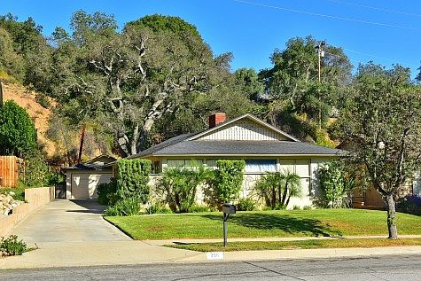 This 50's style ranch house situated on a quiet cul-de-sac in a very desirable North Monrovia neighborhood has been lovingly maintained and is on the market for the first time in 50 years. The carved wood front door opens to a large entry into an open floor plan that offers an expansive living room with tons of windows, a stone fireplace and a good-sized dining room with ceramic tile flooring and floor-to-ceiling windows. The kitchen features ceramic tile countertops and flooring, ample wood cabinetry, 5-burner Jenn Air electric cooktop, breakfast bar, built-in oven, trash compactor and dishwasher. There are four bedrooms off the center hallway, all with large closets, including a very large master bedroom with dressing alcove, attached ¾ bath, and an exit to the backyard. There is another ¾ bath off the laundry area, and a full bathroom off the hallway. Central air and heat and a security system. Compact backyard wit h a patio, large oak tree, and access to garage.