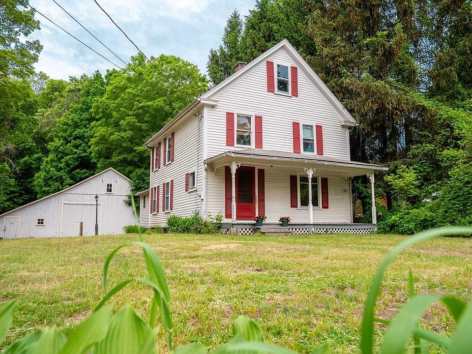 An awesome opportunity awaits you at this farmhouse situated on .85 acres! This 4 bedroom, 2 bath home boasts a large open kitchen perfect for entertaining, flowing into a spacious dining room and living room. The stained glass window leading up the stairs just adds to the charm! Whether you're in need of lots of storage space, or more living space that can be finished, you can choose from the large walk up attic, or the full basement. The 2 large barns on property both have electricity and one has heat. Being zoned "limited business", there are so many great ways this property can be used! Conveniently located in the Five College area! Bring your innovative ideas!