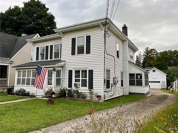 Spacious 2,016 sq ft 2 Family home with 2.5 car garage, concrete driveway and partially fenced in yard. Enter the front enclosed porch to access both units. The lower unit offers 2 bedrooms, 1 full bath, large foyer, leading to the formal dining room and living room. Sizable kitchen with plenty of cupboard space, laundry room and enclosed side porch. Upper unit offers 2 sizable bedrooms, 1 full bath, living room, dining room area and kitchen leading to an enclosed back porch with private staircase leading outside to the back yard. Hardwood floors throughout much of the home. 2.5 car garage offers loads of storage space with additional loft space to utilize. Upstairs unit is vacant and freshly painted ready for new tenant or owner occupied space. Several updates already done with newer roof, exterior doors, some new windows and flooring. Electric and plumping updates and newer hot water heater and furnace.