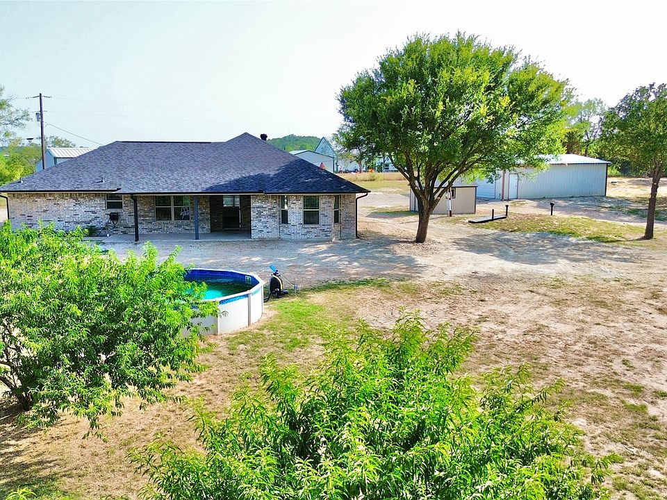 If you're looking for an UPDATED home on some land with LOTS OF TREES, this is it! Move-in ready! Just over 10 acres with gated entry and pipe fencing to keep the horses in. Escape to a tranquil country paradise full of oak trees, elm trees, crape myrtle trees, and even some fruit trees. The covered front porch features ceiling fans under the patio with a view to the wooded acreage and the pool. The kitchen features beautiful stone countertops, stainless steel appliances, stylish fixtures and lighting, and plenty of storage. The huge living room features recessed lighting, ceiling fan, and lots of natural light. The master bedroom features recessed lighting, ceiling fan, 2 separate closets, and a master bath. Bathrooms feature stone countertops, black fixtures and black matching hardware. 40'x28' metal shop is insulated and has plumbing and electric. There's also a storm shelter a few feet from the house to stay safe in a Texas twister! Seller concessions available for the buyer.