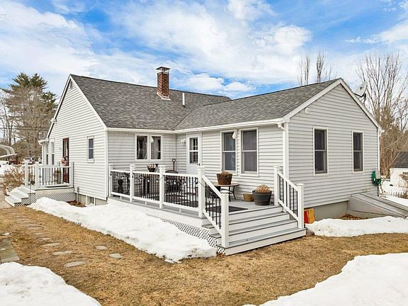 This well-maintained ranch sits on a .62-acre lot offering privacy and a spacious backyard that abuts a wooded area, perfect for play and relaxation. The open-concept layout features a walk-in kitchen, dining area, and a large living room overlooking the backyard and leading to a Trex deck (installed in 2024). The primary bedroom is generously sized, with an additional room ideal for a bedroom or office. The lower level has been freshly repainted (walls and ceiling), adding to the home’s move-in-ready appeal. A 3/4 bath features a walk-in shower (updated in 2024). Additional updates include blown-in insulation (Sept. 2024), new garage door motor (Oct. 2024), and interior painting (May 2024). The two-car garage is equipped with automatic door openers for added convenience. The flat backyard is an excellent space for gardening or outdoor activities. The home is located near The Commons, offering year-round recreation, including an ice rink, playground, and sports fields. Conveniently situated, it’s just 15 minutes to the ocean, lakes, and under an hour from ski resorts and Boston. A wonderful opportunity in a friendly neighborhood— this home is perfect for snowbirds, people looking for one floor living, downsizing or a first-time homebuyer. Welcome home!