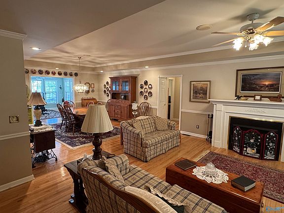 - Features: Ceiling Fan(s), Crown Molding, Fireplace, Smooth Ceiling, Tray Ceiling(s), Wood Floor