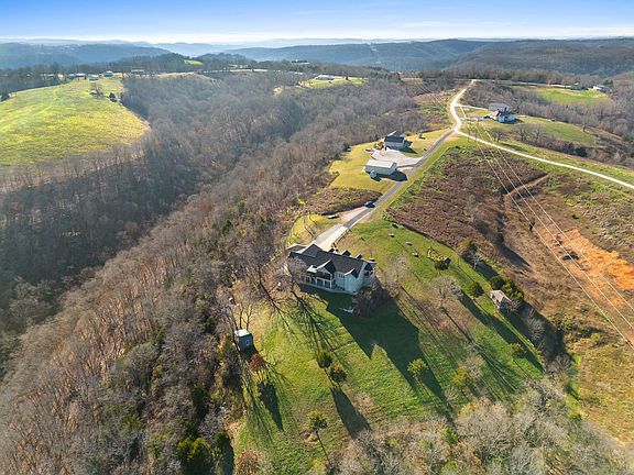 Santa & his Christmas magic arrived a little early this year...Perched high above the rolling Ozark hills & valleys of Mark Twain National Forest and Table Rock Lake, this like-new custom estate feels like it was plucked straight from a holiday storybook. With cinematic sunrise and sunset views that glow like Christmas morning, this private 6+/- acre retreat promises serenity, wonder, & unforgettable gatherings for seasons to come.Crafted w/ intention & extraordinary detail, this rare multi-family unicorn offers three potential owner's suites (one on each level), two gourmet kitchens, & a year-round glass-in sunroom where natural light pours in like Santa's sleigh beams guiding the night. The main level delights w/ rich hardwoods, a cozy gas fireplace perfect for warming chilly winter evenings, coffered-ceiling dining room, & an open-concept chef's kitchen w/ granite, custom cabinetry, island, stainless appliances--ready for holiday feasts & twinkling-light celebrations. A spa-like primary suite, two guest bedrooms w/ Jack & Jill bath, & attached 3-car garage + bonus carport complete the main-level magic.Upstairs, a private luxe suite awaits--complete w/ its own living space and spa-like bath--ideal for visiting family eager to wake up to mountain views & Christmas-morning quiet.Downstairs, take the whole crew to an enormous rec room w/ 2nd fireplace, full 2nd kitchen/dining, two more generous en-suites, & bonus office--perfect for multi-gen living, holiday hosting, or extended winter escapes.Step outside to expansive covered patio space where you can listen for Santa's bells drifting across the hills, enjoy crisp winter air, endless stargazing, & the soothing hush of nature surrounding you.Bonus! Adorable almost-complete glamping shed w/ mini-split--ready to become a magical craft cottage, cocoa & cookie outpost, or next-level kids' playhouse.A new season of cherished memories awaits @358 Spring View Pl in the heart of the rolling Ozark Hills.