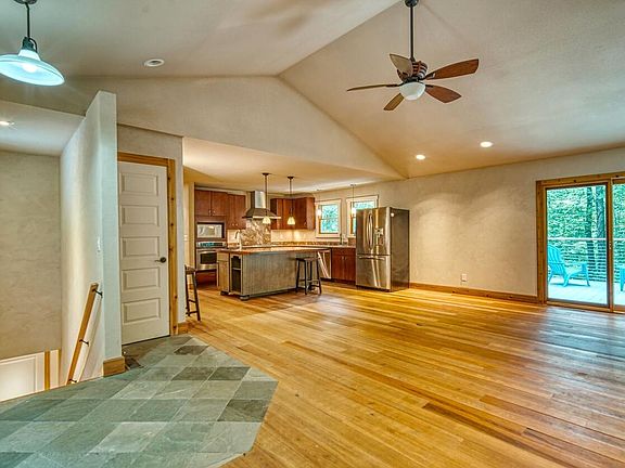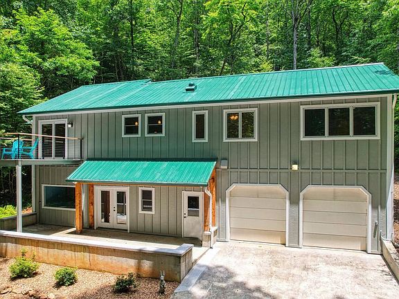 LOCATION - private home in the sought-after Tusquittee Valley. LOCATION - noisy, pristine creek running through the middle of 5.84 acres for approx. 700 ft of frontage, LOCATION - US Forest Service frontage! 3 bedroom, 2.5 bath - Open floor plan with outside living on creek side screened porch and deck to enjoy the peace and quiet. Primary bedroom/bath and laundry on the main floor. Longleaf heart pine floors, Pella aluminum clad wooden windows, dual fuel heating with wood/propane and air and two 200 amp electric breaker panels. Plenty of storage, Large 2 car garage. Ample parking for guests. Bring your hiking/creek shoes to walk trails into the USFS to view cascading WATERFALL. Eligible for airport easement and hanger lot at additional cost.
