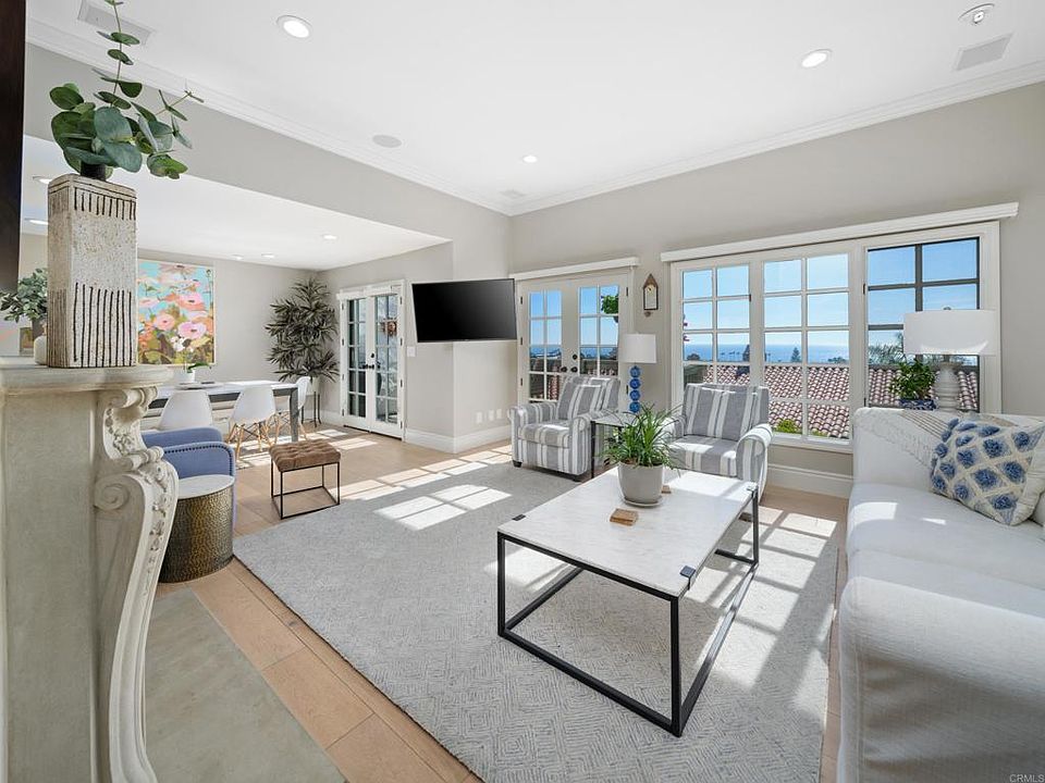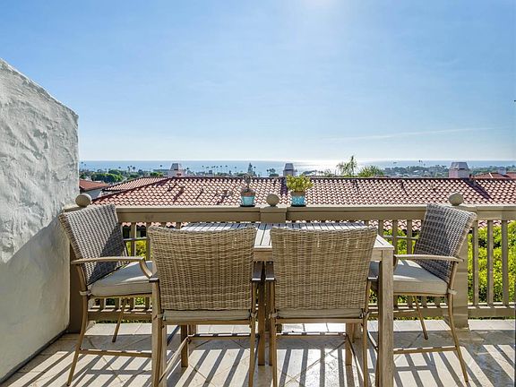 This remarkable property is perched at the highest point in the Haciendas De La Playa community, offering breathtaking ocean views from the main living areas. Upon entering the residence, you will be greeted by the open and airy layout seamlessly connecting the living room, dining area, and kitchen. Whether you are entertaining guests or enjoying a quiet evening at home, this home offers a stunning backdrop with panoramic ocean views. The gourmet kitchen is a chef's dream, equipped with top-of-the-line appliances that include a Viking range oven, a Sub-Zero fridge, and a Miele dishwasher. The kitchen also features Carrera marble countertops, adding a touch of sophistication to the space. The home features dual primary bedrooms, providing convenience and privacy. Both master suites boast spacious walk-in closets. Take advantage of this prime location and explore the vibrant shops, dining establishments, and charming cafes that Downtown Encinitas has to offer. Take leisurely strolls to the nearby beaches and immerse yourself in the coastal lifestyle.