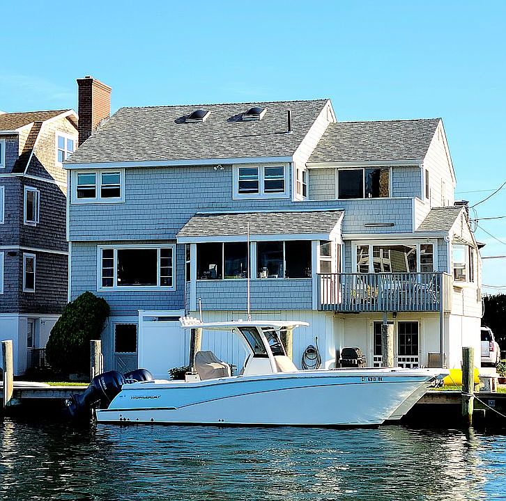 This bright and sunny WATERFRONT home in picturesque GLP is the perfect home base for a beach lifestyle. Not only is the crescent beach across the street, but the backyard has 51 feet of deep water dockage for toys, swimming and your boat! Beautiful water views and lots of space for everyone to spread out. Fully outfitted kitchen with breakfast nook, dining room, two decks and windows everyone to let in all the summer sunshine. There are three full bathrooms indoors plus a huge outdoor shower. Groton Long Point offers lots of activities for all ages- sailing, swimming, or tennis lessons, 4th of July parade where Everyone gets to participate, races, movie nights for various age groups, private cookout and fireworks on Family Night.