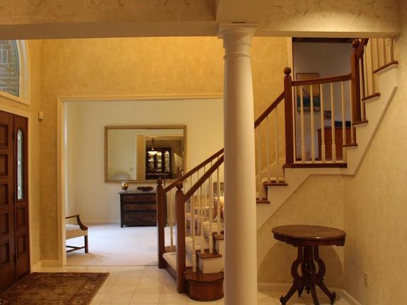 Custom built Colonial on 2.45 private manicured acres. The main entry has a leaded glass door with side lights, ceramic tile and opens to the living room which has 10' ceilings. The original builder has created a dramatic look by the use of extreme ceiling heights and intermediate levels. The angled staircase can be seen from the dining room which has Brazilian Cherry flooring, and foyer. As you proceed to the kitchen the Corian angled island and counter tops look like the day they were installed. All high-end kitchen appliances will remain Microwave '16. A special feature of the eating area is the one-of-a-kind oversize height of the sliding patio door which leads out onto a covered deck. Perfect for entertaining is the openness of the kitchen to the family room. Gas fireplace, built-in bookshelves, wet bar and newer carpeting are part of the family room. The office has 11' coffered ceiling, transom windows and French doors which lead to the upper level. There is a Jack & Jill full bath with double sinks, tile floor and a tub shower combination. The third bedroom has a walk-in closet, palladium window and a 10' ceiling. Master bedroom has a gas fireplace, sitting area with doors leading to a private upper deck. Master bath has a ceramic oversize shower, separate jetted tub and granite counters. Enormous walk-in closet. The basement is walkout with carpeted game area and open area with 12' ceilings. Furnace new '16 w/wfi and smart phone enabled. Aprilaire humidifier '16.