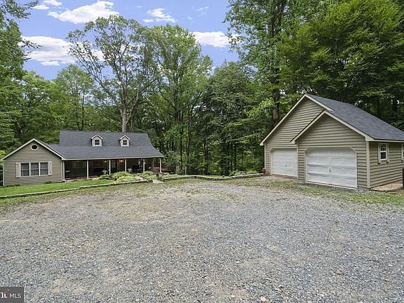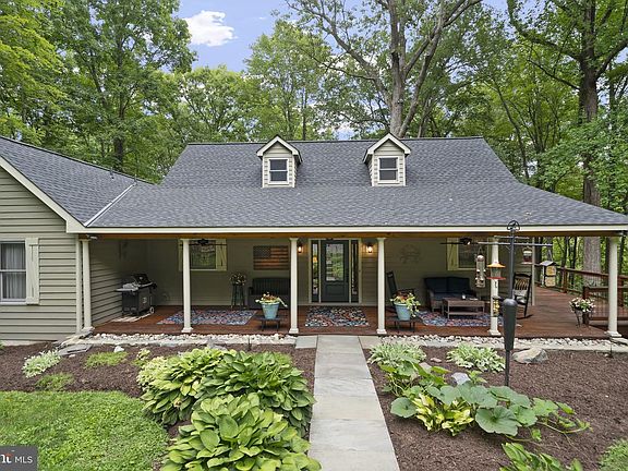 One of a kind, custom built home available now, but not for long! The flagstone walkway through a parklike setting will lead you to a house bursting with unique features, including a soaring, two-story stone wall with a top of the line Hearthstone, soapstone wood stove, wood plank ceilings, and Brazilian cherry floors. The kitchen is updated with gorgeous cabinets, granite, and stainless steel appliances, perfect for hosting or simply exploring your inner chef. The main floor offers two spacious bedrooms with over sized doors and 2 full baths. The primary bedroom features a vaulted plank wood ceiling, private deck for you to enjoy all the wildlife, walk-in closet with a second closet for additional storage, lighted loft space, and bathroom with an extra large shower with multiple shower heads. On the top floor you will find two more large bedrooms with another newly remodeled full bathroom, plus a catwalk to enjoy the two-story stone wall. The basement offers another bedroom (or make an office), full bathroom, recreation room, laundry room, and storage. The exterior features a welcoming porch and enormous wrap-around deck, partially enclosed with a barn door. Under the house is a massive, unfinished space perfectly suited for a workshop, home gym, additional storage, or a myriad of other uses. The only limit is your imagination! As if that isn't enough, the property is 5.39 acres and also offers an invisible fence. A detached, two car garage with a massive loft space. This property must be experienced, not just read about...so please book your showing before it's too late, you'll be glad you did! Updates in 2021: Kitchen remodel. Upstairs guest bath. New deck master bedroom. New carpet upstairs installed July. Stove was recently certified and has not been used since. New in 2020: Roof. HVAC. Water softener. Drop ceiling and recessed lights in basement. Risers installed on septic and pumped (July). Vents cleaned. New in 2019: Washer and dryer Enjoy the Trail around the home, Creek in backyard. Swing off the platform into the woods. Make afire in the Campfire and so much more. You will feel like you're on vacation right in your own backyard. Things to do close by: Beaches. Boardwalks. Museums. Parks. Hunt for Sharks teeth. Restaurants. shopping, just to name a few. Close to Annapolis, DC and much more. *ALL OFFERS ARE DUE BY 6:00 PM today, Tuesday, August 10th.