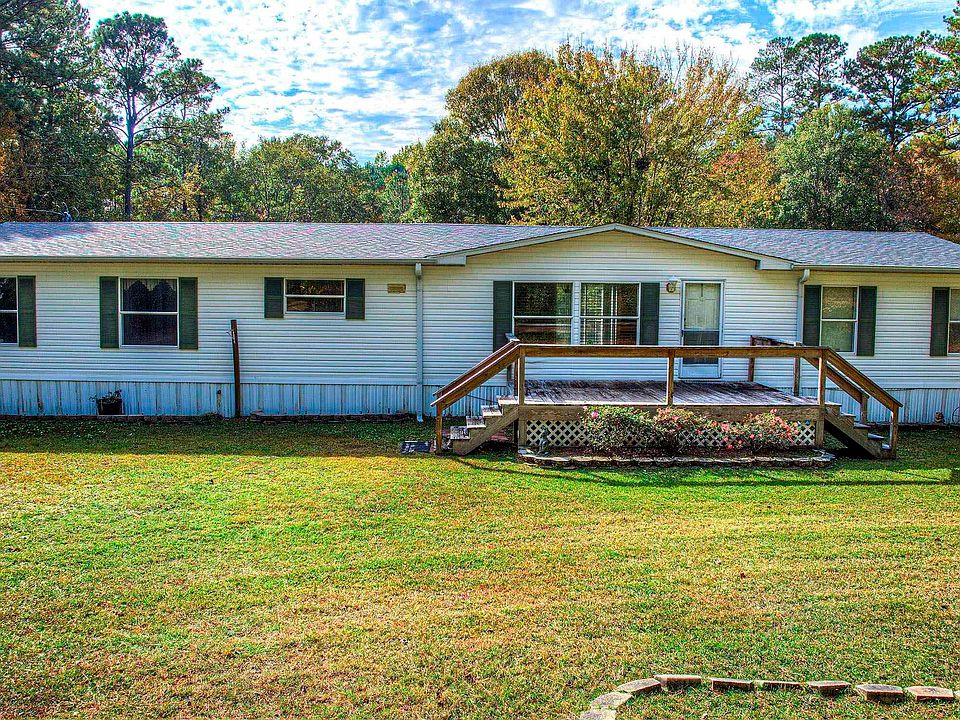 Zone CFA, Commercial Farm Agriculture. you can live and open a business on property.4-bedroom 2-bathroom home on 2 acres in Little River, SC. This manufactured home offers a spacious and open floor plan with plenty of bedrooms. The master bedroom has a sitting area, extra closet space and attached bathroom with a stand-up shower and soaking tub. The home also features a sliding glass door that opens to a fenced in back yard, front porch lastly an enclosed back porch. Outside is a metal shop, approximately 1064 sq ft with 2 roll up doors and a separate electric meter. It also features a large pond and 2 additional storage sheds. The shop has a separate electric meter and measures 25 x 38. It has 14' high ceiling and 2 roll up doors, windows and doors. Attached to the shop is an additional storage container and shed. Behind the home is an additional storage shed and chain linked fenced in back yard area. There is also an established man-made pond behind the home. The home is on 2 acres with a new septic tank system spring 2021 and county water. The air handler replace 5/2019. The roof is new Jan,2023, The home has a front porch and enclosed back porch area. All measurements are approximate and must be verified by buyers or buyer's agent.