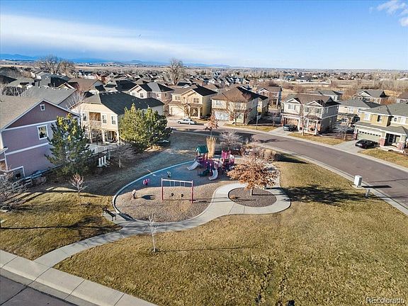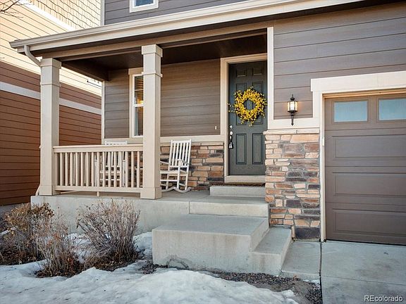 Beautifully updated, open and bright floor plan with finished basement! New luxury vinyl plank flooring throughout, fresh paint, shiplap walls, and built-in shelving surrounding the gas fireplace. Spacious kitchen with granite countertops and sliding glass door that overlooks your private deck. Three bedrooms plus a large loft/playroom upstairs and an additional full bathroom. Primary suite with walk-in closet. Finished basement with 4th bedroom plus a large flex space/office, and another full bathroom. Huge private deck off the back that's perfect for entertaining with built-in swing and mature tree. Low maintenance living with HOA maintained yard! Perfectly located across the street from the park with easy access to shopping, dining, and the Denver airport. Additional storage and cabinetry in the garage.