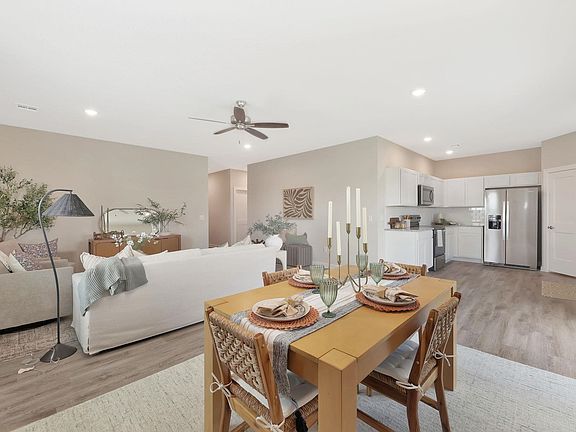 Welcome to the Cleveland floor plan by Liberty Communities! This beautiful one-story home offers 4 spacious, carpeted bedrooms and 2 full bathrooms designed for comfort and functionality. The heart of the home is the kitchen, featuring sleek granite countertops, a large walk-in pantry, and a full suite of appliances—including a stove/oven, microwave, refrigerator, and dishwasher. Enjoy durable LVP flooring throughout the main living areas, window blinds for added privacy, and ceiling fans in both the primary bedroom and living room to keep things cool and comfortable. Step outside to a concrete patio—perfect for relaxing or entertaining—and take advantage of the oversized 2-car garage, complete with a FEMA-approved storm shelter for peace of mind. Landscaping is already in the works with irrigation, sod, a tree, and shrubs included. All major appliances are included: stove/oven, microwave, refrigerator, dishwasher, washer, and dryer—just bring your boxes! Outside, it’s move-in ready with an irrigation system, fresh sod, bushes, and a tree already in place. Built with quality in mind, this home features James Hardie concrete siding, high-efficiency HVAC, and window blinds throughout.