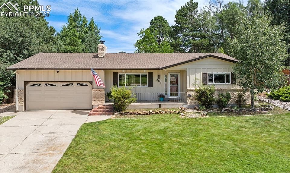 Welcome to this charming ranch-style home that effortlessly blends comfort and character and offers unique architectural features! Single level living is an exceptional find in this quaint, quiet neighborhood. Step inside to find stunning vaulted tongue-and-groove ceilings with exposed beams that create a warm, inviting atmosphere throughout the main living and dining areas. The engineered hardwood floors flow beautifully through the kitchen, hallways, and entry, complementing the timeless style of this well-maintained home. Enjoy cozy evenings by the floor-to-ceiling brick gas fireplace, the heart of the spacious living room. The kitchen is a cook’s dream, featuring 42" cabinetry, stainless steel appliances, solid surface countertops, and ample storage. With three bedrooms and two full bathrooms, there's room for everyone. The primary suite offers a peaceful retreat, while the secondary bedrooms are perfect for family, guests, or a home office. Step outside through the large sliding glass door to a beautifully landscaped backyard with lush grass, a brick patio, and automatic irrigation—ideal for entertaining or simply relaxing. The adorable front porch, flat lot, and quiet neighborhood enhance the curb appeal and livability. Additional highlights include a two-car garage, large windows that let in tons of natural light, and a location that offers both privacy and community charm. Don't miss the chance to tour this warm, inviting home—it’s a true gem! New roof installed in Fall of 2023 and new water heater installed in 2022. Listing Agent is Property Owner.