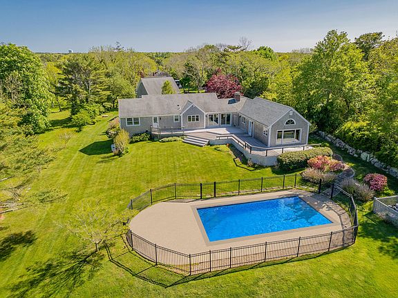 Enchanting Northside home, nestled on over 2 acres of meticulously landscaped grounds, abutting conservation! Set back from the road with a heated pool and peeks of Sandy Neck beach and lighthouse. This spacious ranch combines comfort, elegance, and sustainability, along with an array of exceptional features. The floor plan is perfect for entertaining and large windows fill the space with natural light. A chef-inspired kitchen and adjacent dining are ideal for gatherings, and the double sided fireplace can be enjoyed in the living room and library/den. The lower level is a walkout design and boasts additional workout or office space and a relaxing sauna. Step outside to experience the true beauty of this property with amazing gardens. There is a large barn/outbuilding, and well-water irrigation. A fantastic garage complete with workshop and expansion possibilities is also great for storage and hobbies. Generator, solar panels, and outdoor shower are other notable updates. With its desirable location near the beach, marina, and village, this property offers the best of both worlds - a peaceful retreat surrounded by nature, yet close to amenities. Schedule your private showing today!