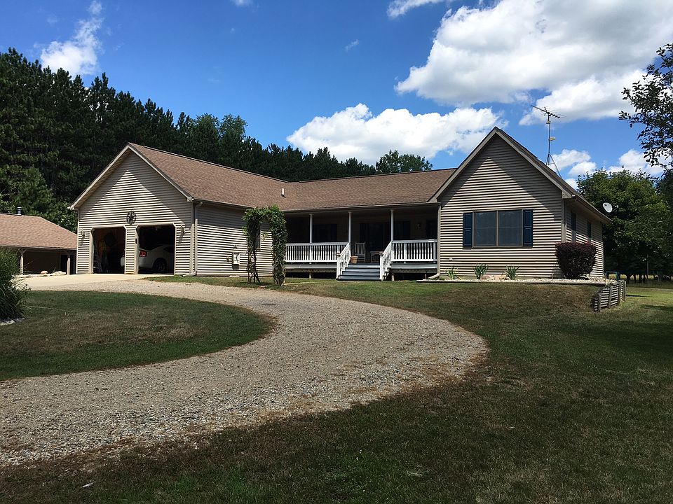 Custom built sprawling ranch with an open floor plan. Huge master suite, walk in closet, garden tub & separate shower with large door wall to the back deck. The kitchen has solid oak flooring, bar seating and is open to the dinning room also with oak flooring. This is a split ranch with the master bedroom is located on one end the home and the additional bedrooms the other. She has a full basement with only the bedroom being finished leaving tons of potential to create your own theater room or man cave! 24x40x10 Pole Barn with concrete floor & electricity for your storage needs. 12.38 Acres that is very secluded with the home back in off the road over 700 ft. The home is in A-1 condition and ready for its next family!!