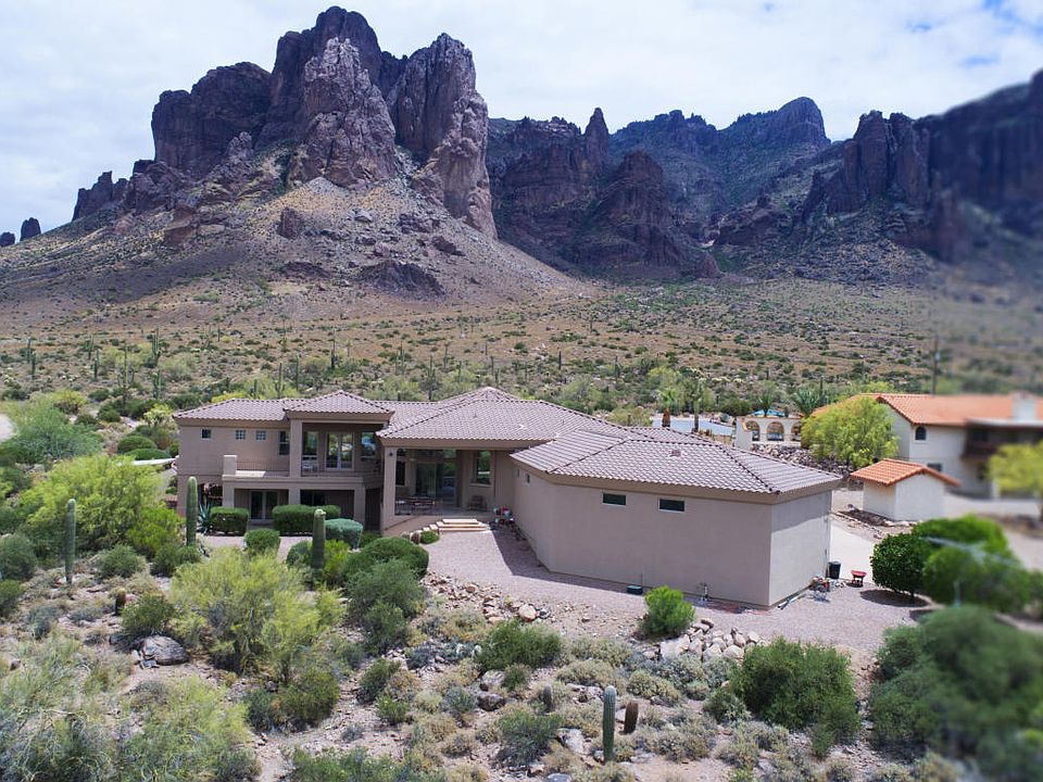 MILLION DOLLAR MAJESTIC VIEWS OF THE SUPERSTITION MOUNTAINS!! Dramatic stone front, arched entry leads you to your very private SANCTUARY RETREAT in Paradise! This MODEL SHARP DREAM HOME boasts Fabulous, PANORAMIC POSTCARD VIEWS FROM EVERY ROOM! Stunning, artistic Arizona sunsets & sunrises! You are welcomed w/picturesque views of the POOL & lushly landscaped RESORT STYLE Yard! Enjoy the UNOBSTRUCTED AMAZING VIEWS OF THE SUPERSTITION MOUNTAINS while having a RELAXING SOAK in your SOOTHING spa. Light, bright, open, spacious split floor plan w/arched openings! Ceramic tile & 2-tone designer paint w/warm, rich earth tones! Open, spacious eat-in kitchen, Ash custom cabinets, island, breakfast bar, upgraded stainless steel appliances, smooth-top range, B-I microwave, Built-in Wine Rack, walk-in pantry & counter space galore! Dramatic dbl door entry to Master Suite, huge walk-in closet off Mstr bath, relaxing garden tub w/jacuzzi jets, marble snail shower, double sinks, tons of cabs & vanity counter space! Can you believe the washer, dryer & refrigerator are all included?! Wired for Cat 5 system & wired internet in most rooms. Updated lighting & fans, Dual pane windows, raised panel doors & Water Softener! 4.5 car Extended garages (1 is Over Height) w/multiple work bench areas, shelving, Ã,¾ bath in garage, built-in Air Compressor & a bay with a mechanic's car lift! Garage access door! Multiple covered patios. Very private, lushly landscaped yard, is a Tropical Paradise w/ SPARKLING Pebble Tech POOL w/ROCK WATERFALL & SPA w/new heater! Over-sized Backyard! Great for entertaining! Gorgeous colorful blooming plants! Close to shopping, theaters, restaurants, lakes, hiking & freeways! ''THIS IS A STANDARD SALE WITH AN AUCTION OPTION'',to submit an offer or a bid simply register at EQHomeMarket.com.All offers or bids must be submitted through EQHomeMarket.com.The price advertised is the Opening Bid for the Auction Option.AAR Purchase Contract will be generated after the seller chooses winning offer/bid.Contact LA with any questions. Pre-Auction Offers Accepted