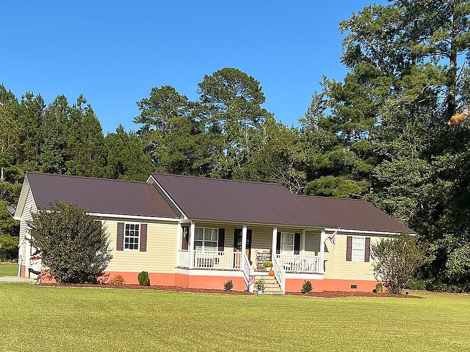 Ranch style stick built house in perfect location. Recent kitchen remodel with new flooring, granite countertops, and all new kitchen appliances. New metal roof within the last 5 years and a new heat and air system. Front and back deck with a fire pit area in the back yard. Two outdoor buildings. Connecting two car carport. Quiet area surrounded by trees for privacy. Bath school district.