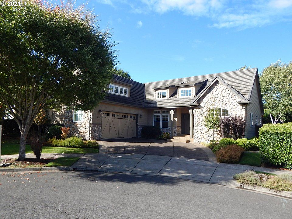 MAIN LEVEL LIVING! Gorgeous Craftsman Gourmet kitchen w/nook, stainless appliances, gas cooktop, new built-in fridge. Large Primary Suite-French doors to patio, Primary Bath: jetted tub, walk-in shower, marble floor, dual vanity, light/bright walk-in closet w/built in features. Living & dining area vaulted ceilings, hardwood floors, fireplace, surround sound, central vac. BONUS/office/bedroom features full bath, closet custom built-in desk/workspace/shelves. Lovely private backyard w/Pergola.