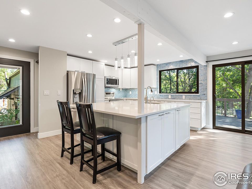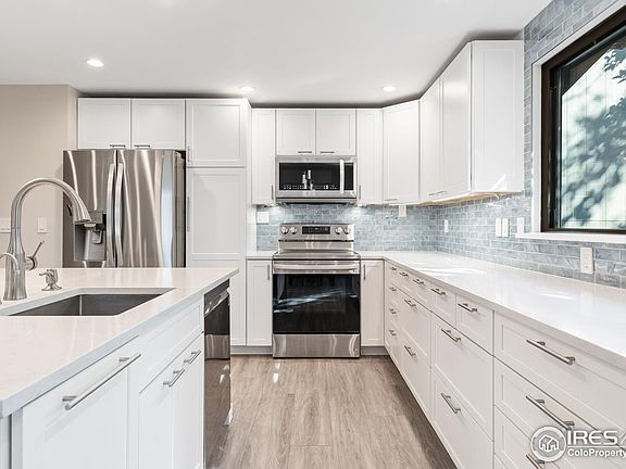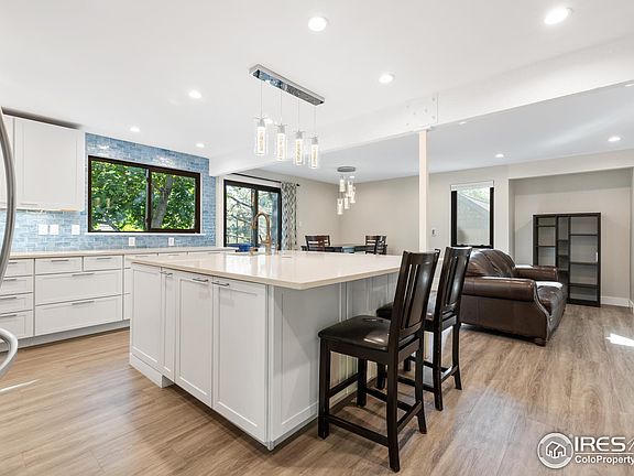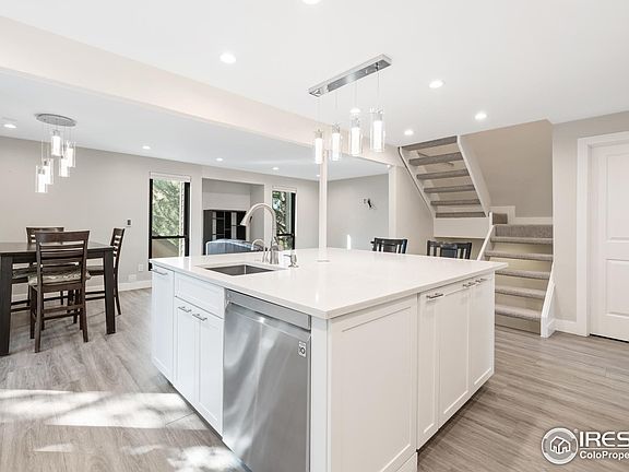 Welcome to 3580 Smuggler Circle, a truly exceptional townhouse with thoughtful details throughout. This fully updated home has an open floor plan that offers the perfect blend of modern luxury and contemporary style. Nestled on Shanahan Ridge at the edge of South Boulder Open Space trails, this home is a haven for outdoor enthusiasts and nature lovers alike. The kitchen is a culinary masterpiece featuring custom Thomasville cabinets, quartz countertops, and new LG appliances. From the oversized island with a built-in pantry to the under-counter lights, every detail has been carefully considered for your convenience and enjoyment. The primary bathroom is a serene oasis, featuring heated floors, a dual vanity, walk-in shower, and custom tile. Each bedroom includes wifi-enabled thermostats, ensuring personalized comfort for every member of the household. New custom Alpen windows and sliding doors illuminate the space, complemented by 4-inch LED lights that create a warm and inviting ambiance. The main floor boasts in-floor heat, along with smooth finish drywall to elevate the experience. With a walk-in laundry room, extra storage under the basement stairs, and custom Elfa shelving in all closets, this home effortlessly combines luxury with practicality. The second level includes a large custom linen/storage closet in the hallway, adding to the home's abundant storage options. Beyond the exquisite interior, this home offers a wealth of modern amenities, including a 75-gallon hybrid (heat pump) hot water heater, keyless entry, and a detached garage. Walking distance to Mesa Elementary, Southern Hills Middle School and Fairview High School.