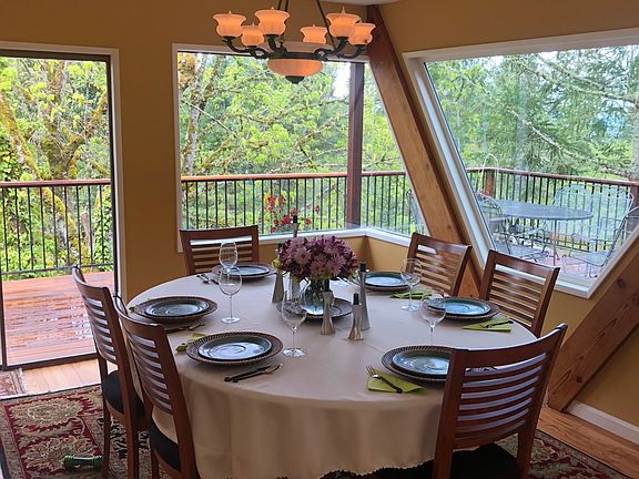 Impeccably maintained architectural gem in the SE hills of Eugene. Structural fir beams and abundant natural light set this home apart. Cooks kitchen with classic Wolf professional range, new Q-Quartz counter tops and appliances, and custom handcrafted fir island. Expansive decking allows for indoor/outdoor living with filtered views of the city. Unfinished artist studio with exciting potential.
