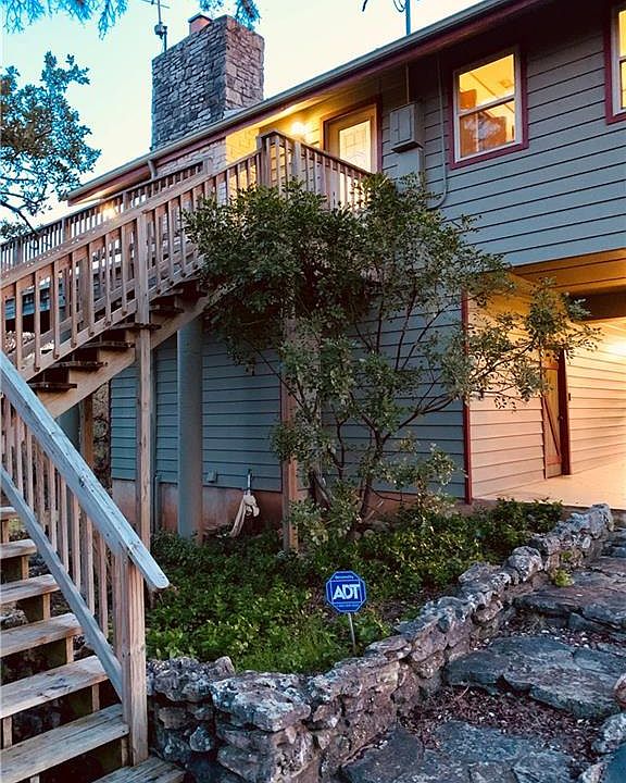 Tree house with beautiful views, sunrise and sunsets from the large open deck. Moon and star gazers delight. Low annual HOA dues, close to boat ramp 11, walking distance to community pool, chapel, park, and fishing pond. Access Canyon Lake from Rebecca Creek and Guadalupe River. Home features three bedrooms, bonus room, two baths, half bath, fireplace, laundry room, storage room, workshop, and two storage out buildings. Close to FM 306, US HWY 281, dining, pharmacy, school, shopping and many Hill Country activities. New septic system recently installed.