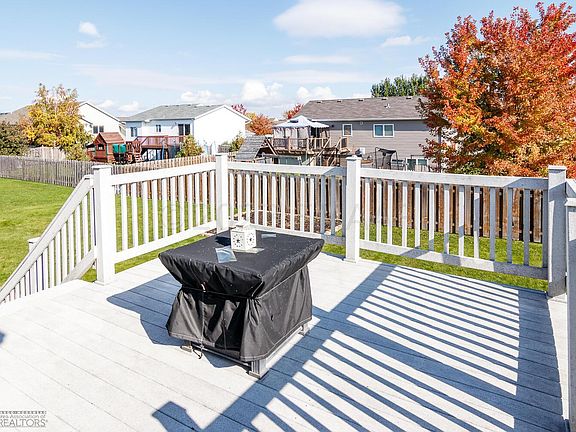 Popular neighborhood close to shopping and dining. Well maintained 4bed/3full bath/ finished insulated oversized 3-car garage and loft for storage. Kitchen has upgraded stainless steel appliances, quartz countertops w/ tile backsplash, Ceramic tile in foyer, kitchen, bathrooms, laundry and furnace rooms. Beautiful wood floor in dining, open to kitchen. EnSuite primary bed w/ private full bath and walk in closet. Maintenance free deck, large well kept yard w/ pavers for 2 seating areas and a pond w/ fountain. Nice fenced area for small pet. Garage is fabulous w/ finished floor and separate entrance to lower level. Large family room w/ gas fireplace. 42nd St and 32nd Ave, 3580 Taylor St. S, Fargo, ND 58104. Close to parks, hiking trails, kayaking, canoeing, bike trails; world class golf