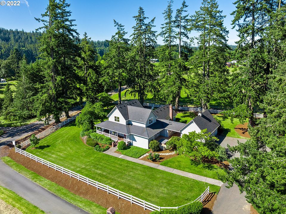 Deer Park, a rebuilt 1900 farmhouse remains the landmark of a historic farm located in the coveted area of Ladd Hill. Set on over two acres you'll enjoy all the joys living in the country offers. The wrap-around porch with timeless balusters frames this picturesque four-bedroom home with generous layout. Master on main leads to deck w/ spa. Kitchen with designer appliances opens to living room with views of neighboring horse property. Three car garage and huge outbuilding supply ample storage.