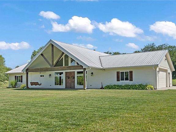 Your Private Retreat Awaits! Remarkable sprawling Ranch home is situated on 9.9 +/- Acres w/Outbuilding & Inground Pool. Home features an Open Floor Plan with Vaulted Ceilings, Beautiful Kitchen w/Island & Walk-in Pantry that flows into the Large Living and Dining Areas. Spacious Master Suite offers Walk-in Closet & Updated Ensuite Bath. Main Level also includes 2 Additional Bedrooms, Full & Half Bath & Laundry Room. Enjoy the outdoors on the Large covered Patio or gathered around the Fire Pit overlooking the peaceful & scenic views with an abundant wildlife population. Property boasts Outbuilding (24x24) with Concrete floors, electricity & is Fully Insulated. Home has quick highway access that offers the quietness of the country yet is close to the conveniences of the city.