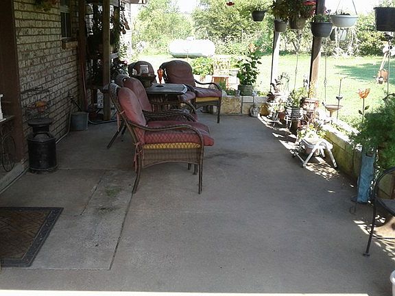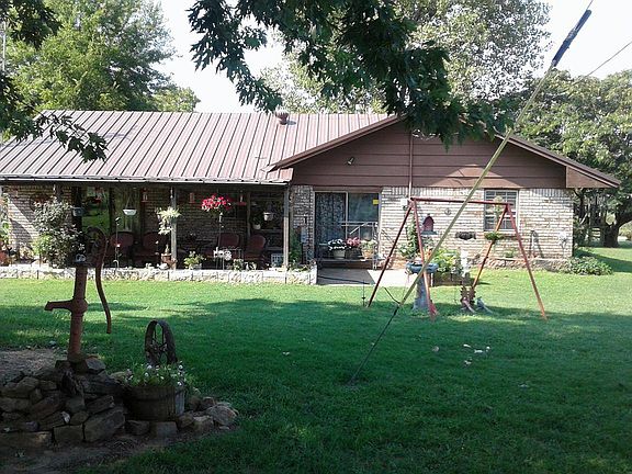 Park like setting 1/2 mile from lake. Spacious yard with large shade trees. 3 or 4 bedrooms brick home. 2x6 exterior framed walls, den with Country Flame fireplace. Barn with outbuilding. Fenced to run calf or horse. Good deep well water. Brown metal roof, detached workshop with 2 car carport.