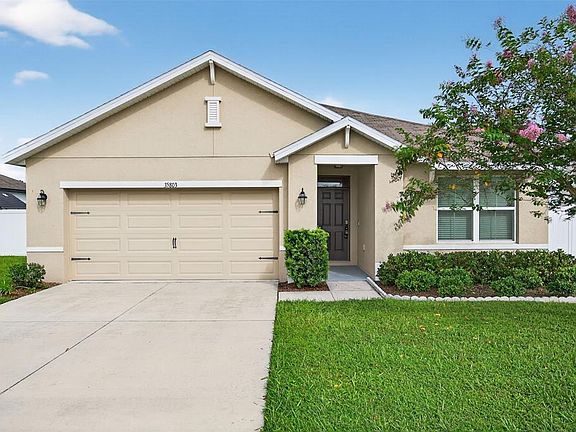 Under contract-accepting backup offers. Absolutely GORGEOUS and TURN-KEY, this light and bright 3 bed, 2 bath SPACIOUS home is better than new! As you approach the home, you’ll immediately notice that it has received the best of care. Beautifully landscaped and IMMACULATELY KEPT inside and out, this TURN-KEY gem of a home may just be THE ONE. With almost 1,700 sq ft, an OPEN LAYOUT, TALL ceilings, and a SPLIT FLOOR PLAN, this home would be the PERFECT STARTER HOME or just right if you’re looking to downsize. With absolutely NO CARPET, you’ll love the easy maintenance of the updated 18-inch CERAMIC TILE flooring throughout. The WIDE ENTRYWAY leads past the secondary bedrooms and hall bath to the large living area, kitchen, and dining area. The kitchen is just STUNNING, offering a shining STAINLESS FRENCH-DOOR REFRIGERATOR, a LARGE PANTRY, range, microwave, and dishwasher. The primary suite boasts a generously-sized bedroom, DOUBLE CLOSETS including a WALK-IN CLOSET, double sinks, a water closet, and a large WALK-IN SHOWER. As you walk to the back of the home, you’ll appreciate the sliding glass door with its maintenance-free built-in blinds leading you to the COVERED BACK PORCH, complete with overhead light and ceiling fan. You’ll especially love the SPACIOUS BACK and SIDE YARDS which are COMPLETELY FENCED IN and include 2 lemon trees, an avocado tree, and space for a garden! The Zephyr Ridge Community has a LOW HOA of only $144 a year and offers a beautiful community pool and patio area! This home is ideally located – close to SR 56, I-75, Avalon Park, the Shoppes at Wiregrass, Restaurants, Dining, and more! Schedule your showing today!