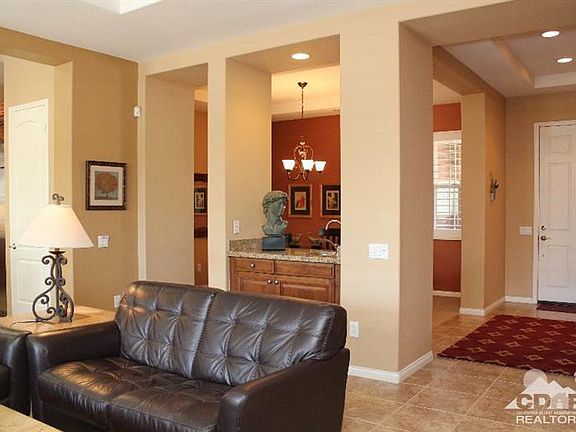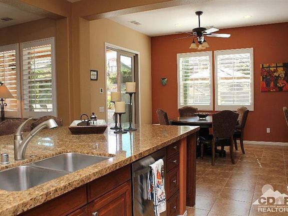 Welcome to the Gallery, one of Palm Deserts newer gated communities. A quality home built by Ponderosa with NO New Home work to do here, all of the upgrades, with pool & landscaping have already been done! Great Room Floorplan with Chef's Kitchen with Slab Granite, state of the art stainless appliances, custom built in refrigerator, walk in pantry and huge island with bar height seating and breakfast nook for casual dining. Enjoy South Facing Backyard with Mountain Views, Pebble Tec Pool & Spa with Baja Tanning Shelf and large covered outdoor living area creates a seamless transition from indoors to out for entertianing.