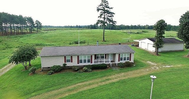 Nice double wide on 1.5 acre lot just outside Hollister. Location provides comfortabe country living with a short drive-time to Roanoke Rapids, Rocky Mount , Littleton or beautiful Lake Gaston. Just a few miles from Medoc Mountain State Park.. Property totally cleared. Almost 1800 square feet of open & airy living space with 3 BR, 3 BA, living room, kitchen, dining room, laundry room, Patio & front porch. Master Bedroom & bath on one side of living area & 2 bedrooms & 2 baths on opposite side. Spacious detached double garage and shop with 2 roll up doors w/electric openers, heated - large shed on side. 2 large garden plots. Large grassed yard. Small goldfish/duck pond out front is partially on the property and partially on the adjoining property across the road. (See survey) New water heater in 2015 & new furnace & AC in 2014. Large storm shelter w/electricity &ventilation.
