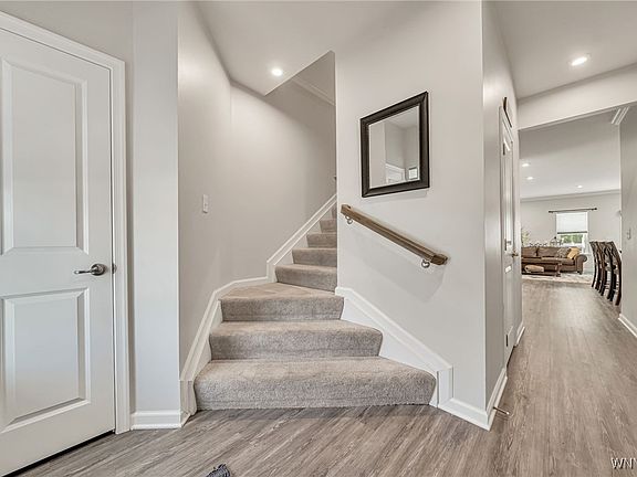 Welcome home to this modern & well-maintained townhome located on a quiet cul-de-sac in Hamburg within the Frontier School District! This is the largest unit in the neighborhood, consisting of three floors of beautifully finished living spaces. The bright & open living, dining & kitchen areas occupy the main floor. The kitchen has a generous-sized island with seating, quartz countertops and gorgeous backsplash. The convenience continues with plenty of kitchen cabinets, a large pantry, stainless appliances (included) and half bath. The 2nd floor houses all 3 bedrooms, a full bath and laundry (washer & dryer included). The remarkable primary bedroom has two spacious closets and a large en suite with a double sink vanity and water closet! Additional living space in the fully-finished basement that has a 3rd full bathroom & egress. Utilities are accessible but thoughtfully tucked away in the storage closets. Enjoy relaxing on your private backyard deck located off the dining area. Parking is easy with an attached 1 car garage and two available spaces in the driveway. Low $160/mo. HOA covers snow removal & lawn care, water/sewer. This townhome was just built in 2020- everything is like-new. Nothing to do but move in! Conveniently located near Lake Erie, Hamburg Country Clubs, Golf Courses, Highmark Stadium and great WNY restaurants! Open House is scheduled for Saturday, 7/19 from 1-3pm.