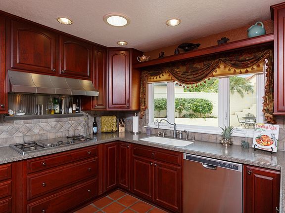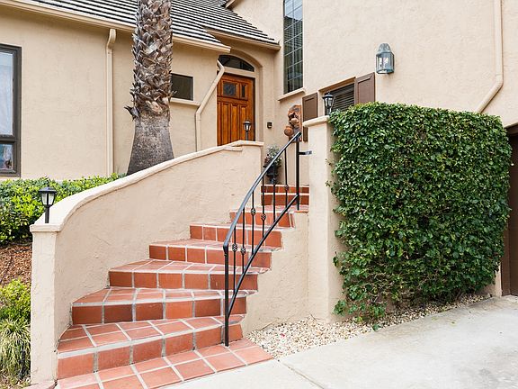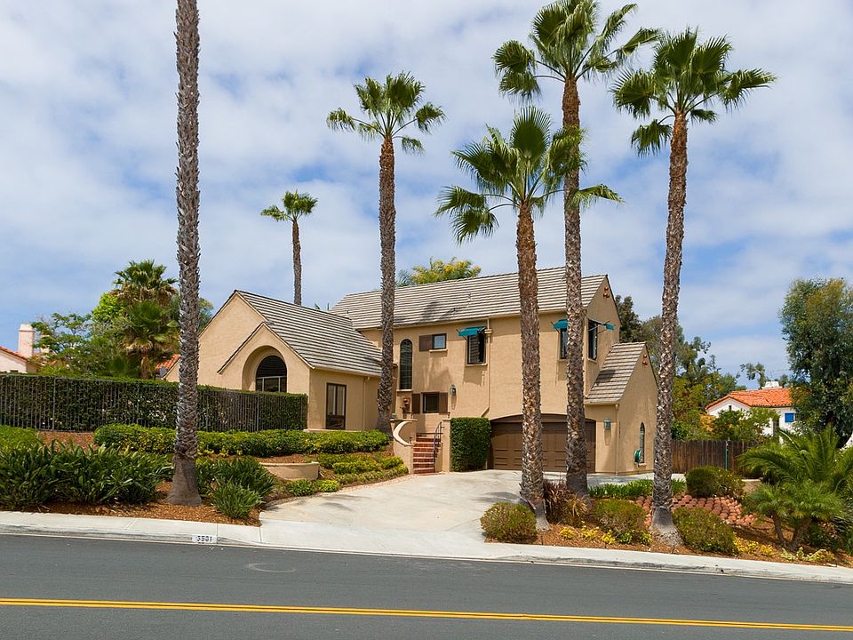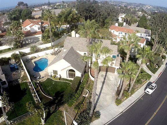 Sellers will entertain offers between $849,000 to $879,000. Top of the Hill location with views of city lights, mountains and hills. French Normandy architecture with beautiful front door entry. Awesome 20 x 25 downstairs office/rec/work-out/bonus room with high ceilings, lots of windows, and built ins. Downstairs bedroom and bath, spacious kitchen with cherry cabinets & stainless steel appliances. Large family room with impressive fireplace, Huge master bedroom suite, deck and separate entrance from secondary bedroom. Large backyard with pool and grass for playground! This garage is a handyman's dream! Storage all along the sides and floored rafters. Shed for extra storage. Indoor laundry room with built in ironing board, lovely wrap around backyard with pool, lawn to play on, room to garden, and place for the dog. Air-conditioning for those hot days, room on side of house for 3rd car, expensive French doors and casement windows. Kitchen includes pull-out drawers, 2 lazy susans, warming drawer, spacious breakfast bar and breakfast nook. Pull down attic ladder in upstairs hallway. Lots of storage in attic. Close to schools, shopping, downtown Carlsbad. Bike to beach. Mill Stone in backyard does not stay.