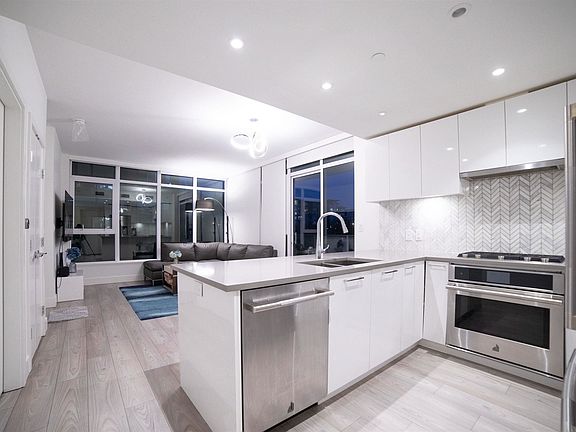 Built by Wesgroup, this bright and spacious 2-bedroom + den corner home offers modern comfort and stunning views. The thoughtfully designed interior features a JennAir appliance package, gas range, quartz countertops, and a marble backsplash. Both bedrooms have spacious ensuites, with NuHeat flooring in the primary ensuite for added luxury. Enjoy year-round comfort with A/C and a NEST monitoring system. Step onto your private balcony and take in unobstructed views of the playfield. This home also includes parking and a storage locker. Residents enjoy brand-new amenities, including a playroom, a fully equipped kitchen with family-style dining, a Sky Lounge with an outdoor BBQ/kitchen, a gym, concierge services, bike storage, and a guest suite. Beautifully landscaped outdoor lounge areas.